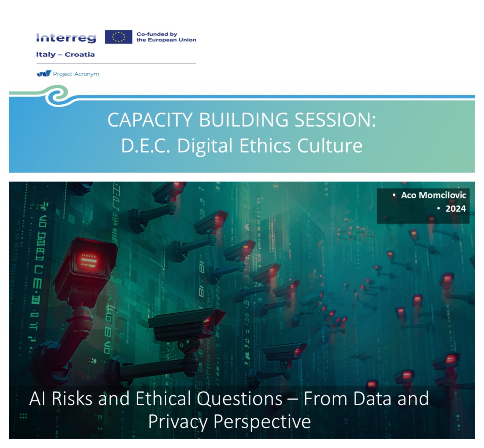 Pridružite nam se na radionici izgradnje kapaciteta o rizicima umjetne inteligencije i etičkim pitanjima u okviru projekta Digital Ethics Culture (D.E.C.), financiranog iz Programa Interreg CBC Italija-Hrvatska 2021.-2027.! Istražite svijet tehnologije AI, zaštite podataka i etičkih dilema s poznatim istraživačem umjetne inteligencije, gospodinom Acom Momčilovićem, vanjskim stručnjakom za umjetnu inteligenciju, zaštitu podataka i sigurnost na internetu! Radionica je otvorena za mlade profesionalce i studente u dobi od 20 do 35 godina u Dubrovačko-neretvanskoj županiji.