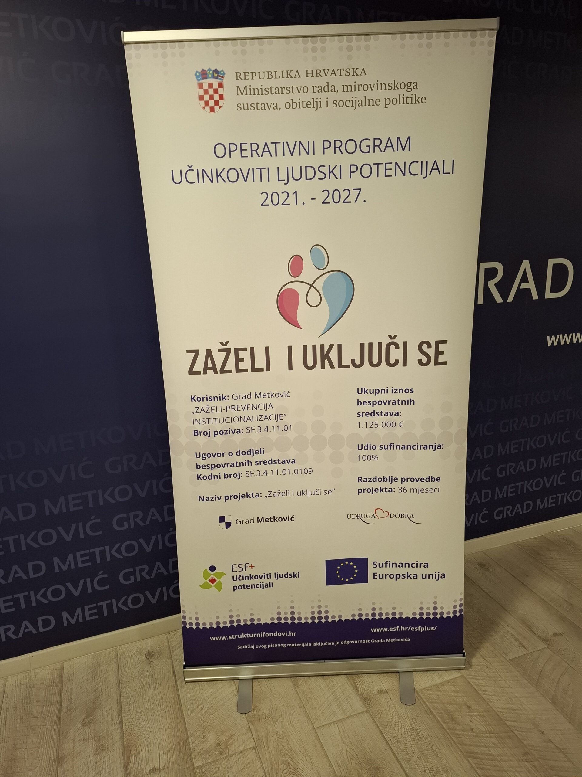 Projekt „Zaželi i uključi se“ (SF.3.4.11.01.0109) je sufinanciran EU sredstvima iz Europskog socijalnog fonda plus u okviru poziva na dostavu projektnih prijedloga “Zaželi – prevencija institucionalizacije„ (SF.3.4.11.01).