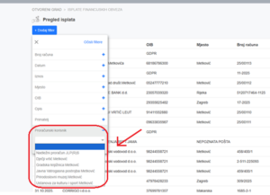 Od 1. studenog 2025. godine dodan je filter „Proračunski korisnik“ gdje se u padajućem izborniku može izabrati Nadležni proračun JLP(R)S tj. Grad Metković ili bilo koji od 5 proračunskih korisnika Grada.
