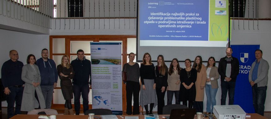 U četvrtak, 12. veljače 2026. godine, u Galeriji Gradskog kulturnog središta Metković održana je radionica pod nazivom „Primjena dobrih praksi i mjera za sprečavanje stvaranja plastičnog otpada“ u okviru projekta TETHYS4ADRION. Radionicu su organizirali projektni partneri Institut za oceanografiju i ribarstvo i Grad Metković, s ciljem uključivanja ključnih dionika pilot područja rijeke Neretve u rješavanje problematike plastičnog otpada koji rijekama dopire u Jadransko more.
